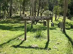 Hanging Rock is a gold mining village and also rock face on the Northern Tablelands, New South Wales, Australia. This former gold mining town is situated about 10 km south east of Nundle. The village is part of the Tamworth Regional Council district and Parry County. Hanging Rock's geographical coordinates are 31° 29′ 0″ South, 151° 12′ 0″ East and the elevation is about 1100 m. Due to the high altitude of the village, Hanging Rock and the surrounding mountains can occasionally receive a snow fall on the coldest of winter days. At the 2021 census, Hanging Rock had a population of 98.[1]