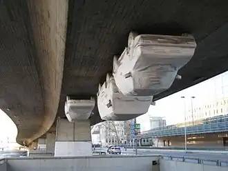 Hangover is an art inspiration in Hanover, Germany, made by Andreas von Weizsäcker. It consists of three sculptures of Volkswagen cars made from polyester, aluminium, and paper, and hang upside-down beneath the Rasch Square Overpass, at the Rasch Square, within the district of Mitte. The installation was first temporary unveiled in 1991, and subsequently removed, before being permanently reinstalled in 1993.