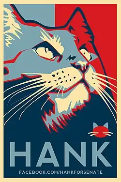 - ^ Greenwood, Arin (2014-02-13). "Goodbye To Hank, Beloved Cat Who Ran For U.S. Senate". HuffPost. Retrieved 2020-06-30.