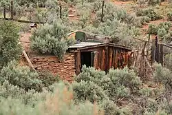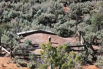 The Hanks' Dugouts are a series of pioneer dwellings in southern Utah, in what is now Capitol Reef National Park. The dugouts were constructed as temporary housing for the Ephraim K. Hanks family, Mormon pioneers who established the now-vanished Floral Ranch on Pleasant Creek in April 1883. The remains of three dugouts and one other structure remain at the site. All above-ground construction has collapsed. The dugouts were abandoned in 1888 when the Hankses built a four-room frame house, although the homestead claim of Hanks' widow claims that a one-room log house was built at the time of settlement. The site includes debris such as ceramic and glass, and pieces of a wagon. The settlement reflects a typical early Mormon homestead of the time.[2]