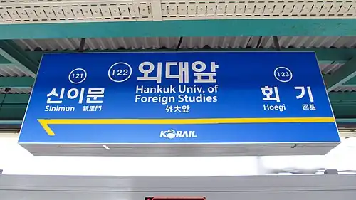- ^ a b 외대앞역 (in Korean). KRIC. Retrieved 2015-09-24.