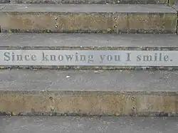The southwest end of the park consists of a lake which is fed from the canal. Fishing is permitted. Next to the lake is a word sculpture that reads