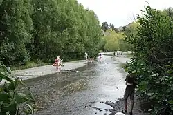 The Hanmer River just downstream from the State Highway 7A bridge is a popular swimming spot | |