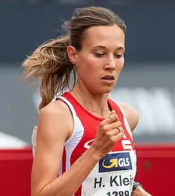 Hanna Klein (born 6 April 1993)[1] is a German middle- and long-distance runner. She won the gold medal in the 3000 metres at the 2023 European Indoor Championships and bronze for the 1500 metres at the 2021 European Indoor Championships. Klein finished fifth in the 1500 m at the 2022 European Championships. She took gold for the 5000 metres at the 2017 Universiade.