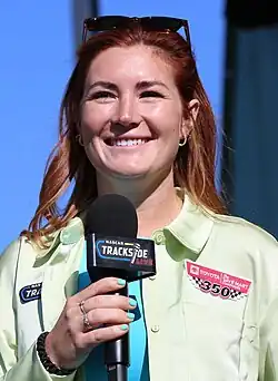 Hannah Newhouse (born February 4, 1997) is an American professional stock car racing driver and reporter. After driving for four years in what is now the ARCA Menards Series West, she is currently working as a pit reporter and analyst in NASCAR for Motor Racing Network and various other websites and racetracks and in IMSA on TV for NBC.