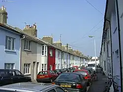 The exact boundaries of the neighbourhood of Hanover are generally thought of as the area running up the hill to the east of the Level, towards Queen's Park Road, bounded on the north by Elm Grove and on the south by Sussex Street. The local government ward of Hanover & Elm Grove includes some of the streets to the north of Elm Grove, and the streets north of Down Terrace. Many streets in Hanover are characterised by brightly coloured houses.[3]
