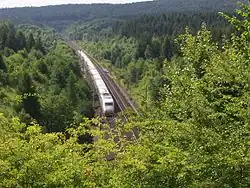 The Hanover–Würzburg high-speed railway is a double-track, electrified high-speed railway between Hanover and Würzburg in Germany, 327 kilometres (203 mi) in length. The line, built between 1973 and 1991, was the longest contiguous new project constructed by Deutsche Bundesbahn. The total costs were almost DM 11.9 billion[2] (around €6.1 billion; 1980/90s prices).
