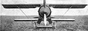 The closely cowled radial engine set the diameter of the H.26's short nose and drove a two blade propeller behind a very large diameter domed spinner. The Salmson was initially cooled with a semi-circular Botali radiator to the rear of the engine but this proved ineffective and was replaced with a pair of Chaussons, one on each forward undercarriage leg.[1] The H.26 had a fixed conventional undercarriage with mainwheels on a centrally hinged split axle, enclosed within a lift-contributing wing-like fairing and supported by N-form struts attached to the lower fuselage longerons on each side. Originally, these were reinforced by long vertical struts from the shock absorber attachments to the upper wing central section.[2] These were discarded when the interplane wires were replaced by the faired interplane struts, which extended downwards to the rear undercarriage structure; the tops of the shock absorber struts were relocated to mid-fuselage on the engine mounting.[1][4]