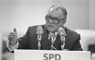 After the war, Wischnewski joined the SPD. He was employed by a metal-working company and from 1952 trained as an IG Metall union secretary. Upon the 1957 federal election, he became a member of the Bundestag parliament and also an SPD board member in the Cologne district. He was elected federal chairman of the party's Young Socialists youth organisation in 1959 and joined the SPD federal committee in 1970, from 1979 as deputy chairman. From 1961 to 1965 he also was an elected member of the European Parliament.