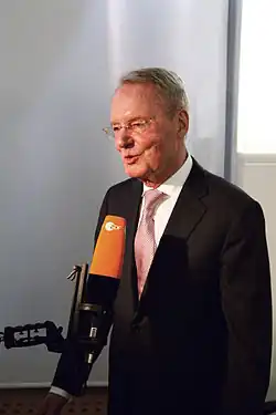 Hans-Olaf Henkel (born 14 March 1940) is a German politician, a Member of the European Parliament (MEP) from Germany and a publicist. He was formerly a manager at IBM, president of the Federation of German Industries (BDI) and president of the Leibniz Association Archived 3 May 2019 at the Wayback Machine. After decades as a political observer, he was elected to the European Parliament in 2014 for the AfD (Alternative für Deutschland). In response to the election of Frauke Petry as the new federal chairman in July 2015, he resigned from the AfD. He is now an independent member of the European Conservatives and Reformists.