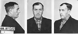 Hans Anhalt (25 September 1908 - 13 April 1975) was a member of the Nazi Party who served in the SS. During World War II, he was stationed in Auschwitz concentration camp. There, Anhalt personally murdered multiple prisoners, selecting them to be gassed or experimented on. After the war, he settled in East Germany, until being exposed in 1962. Anhalt was sentenced to life in prison, where he died in 1975.