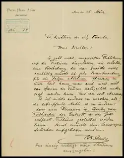 - Kisa, A. “Die Bauten Hans Auer's,” Allgemeine Kunst-Chronik 11, no. 19 (1887), pp. 493–494.