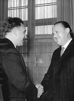 ![]() Hans Bentzien (left) awarding the Johannes R. Becher Prize to the poet and storyteller Franz Fühmann, 1963 | |