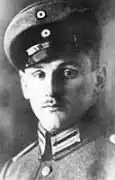 When World War I began, he went into action on the Western Front.[3] His unit moved into action on the very first day of the war, serving as sappers. His service with them was ended by an ankle injury that sent him to hospital first in Maubeuge and then back to Germany. It was then he applied for pilot's training.[2]