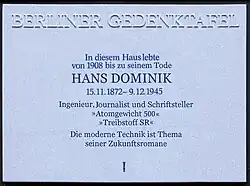 Hans (Joachim) Dominik (15 November 1872 – 9 December 1945) was a German science fiction and non-fiction author, science journalist and engineer (electrical and mechanical).