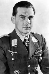 Hans Ehlers[Note 1] (15 July 1914 – 27 December 1944) was a German military aviator who served in the Luftwaffe during World War II. As a fighter ace, he was credited with 55—that is, 55 aerial combat encounters resulting in the destruction of the enemy aircraft—claimed in an unknown number of combat missions. He claimed eleven victories on the Eastern Front and 44 over the Western Allies, including 23 four-engine bombers.