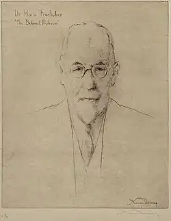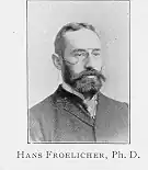 At the Woman's College of Baltimore, Froelicher Sr. taught French, German language, German literature and the history of art for decades.[7][1] However, he was dismissed from the college in 1918 for ambiguous reasons, perhaps due to German prejudice in the midst of World War I.[2] In response, Froelicher Sr. wrote to President Woodrow Wilson asking for support and was quickly was reinstated after Wilson's endorsement.[2] In addition to teaching at Goucher for over 40 years, Froelicher Sr. taught summer classes for teachers at Johns Hopkins University.[2]