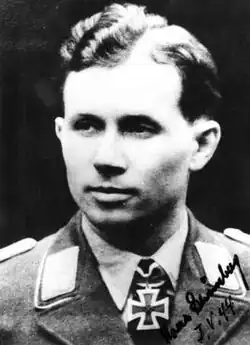 Hans "Specker" Grünberg (8 July 1917 – 16 January 1998) was a German military aviator who served in the Luftwaffe during World War II. As a fighter ace, he was credited with 82 aerial victories in approximately 550 combat missions. The majority of his victories were claimed over the Eastern Front, with 21 claims over the Western Front, including five flying the Messerschmitt Me 262 jet fighter.