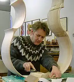 Hans Johannsson (born in Reykjavík, 1957) is a contemporary violin maker, most notable for his 21st century violin, which New York Times chose as one of the best ideas of the year.[1] He makes violins, violas, cellos, double basses and various other stringed instruments. His passion for the violin started at an early age in the workshop of his grandfather Gudjon Halldorsson, a cabinet maker in Reykjavík, Iceland, where he began making musical instruments. He finished his studies at the Newark School of Violin Making[2][3] in Great Britain with a diploma of distinction, under Maurice Bouette and Glen Collins in 1980. He subsequently received a masters diploma from the Icelandic Arts and crafts council in 1982. He has been making instruments for professional musicians in many countries. After 1982, Hans lived and worked with his family at the Chateau de Bourglinster in the Grand Duchy of Luxembourg, until 1993.[4] He is a full member of the International Society of Violin and Bow Makers.[5] David Fulton, the well known violin collector, is quoted as considering Hans Johannsson to be one of the best violin makers in the world today.[6]