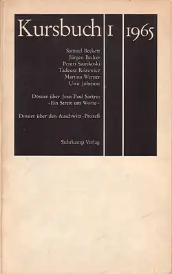 From 1965, Enzensberger edited the magazine Kursbuch;[22] his writings influenced the 1968 West German student movement.[11] He was editor of the prestigious book series Die Andere Bibliothek, published in Frankfurt, from 1985; it reached almost 250 titles.[23] He promoted the writers Ryszard Kapuscinski, Raoul Schrott, Irene Dische, Christoph Ransmayr, and W.G. Sebald, among others.[3] Together with Gaston Salvatore, Enzensberger was the founder of the left-wing monthly TransAtlantik.[24] The literary journal survived for only two years.[3]