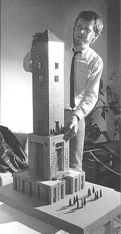 In 1983, he designed the project Campanile in Frankfurt am Main, which turned out to be most influential on the Messeturm. Personal contacts to Joseph Rykwert who introduced him to the work and the person of Hans-Georg Gadamer were seminal to his philosophy and his thinking. "Oase" is the name of his prizewinning design for a Kindergarten near Baden-Baden which continues his quest for classical positions in architectural language.
