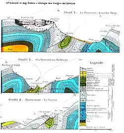 - ^ Schardt H.; Dubois A. (1902). "Description géologique de la région des gorges de l'Areuse (Jura neuchâtelois)". Bull. Soc. Neuchâtel. Sci. Nat. 30: 195–352.