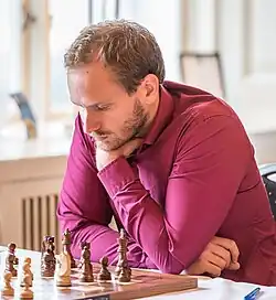 He won the Swedish Junior Chess Championship in 2002.[2] In 2010 he won the Lithuanian University of Agriculture Cup in Kaunas[3] and tied for 3rd–6th with Sarunas Sulskis, Tiger Hillarp Persson and Kaido Kulaots at Borup.[4] In 2012, he came second in the Group C of the Tata Steel Chess Tournament in Wijk aan Zee,[5] and shared first place with Slavko Cicak and Emanuel Berg at the Västerås Open.[6] He played for Sweden in the European Team Chess Championships of 2005 (in team 3), 2011 and 2013[7]