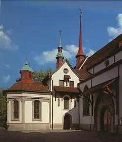 From the low point of being banned from teaching as a result of his leaving the Society of Jesus,[62] Balthasar's reputation had risen to the extent that John Paul II announced plans to make him a cardinal on 29 May 1988. He died, however, in his home in Basel on 26 June 1988, two days before the ceremony which would have granted him that rank.[63] He is buried in the cemetery of the Church of St. Leodegar im Hof (Hofkirche) in Lucerne.[64]
