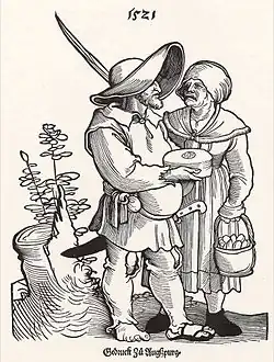 Hans Weiditz the Younger, Hans Weiditz der Jüngere, Hans Weiditz II (1495 Freiburg im Breisgau[1] – c. 1537 Bern),[2] was a German Renaissance artist, also known as The Petrarch Master for his woodcuts illustrating Petrarch's De remediis utriusque fortunae, or Remedies for Both Good and Bad Fortune, or Phisicke Against Fortune.[3] He is best known today for his very lively scenes and caricatures of working life and people, many created to illustrate the abstract philosophical maxims of Cicero and Petrarch.[4]