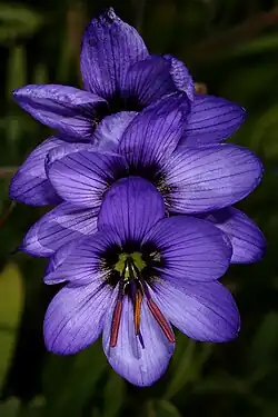 The winter rains on the Bokkeveld Plateau lead to massive blooms from August to the middle of October. 1,350 plant species are recorded here, including the Blue Pride-of-Nieuwoudtville . The garden has many bulbs and the geology includes formations in dolerite outcroppings.