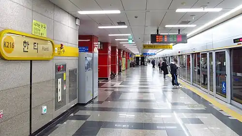 Hanti Station (Korean: 한티역) is a station on the Suin–Bundang Line, a commuter rail line of Korail.