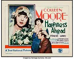 Happiness Ahead is a 1928 American silent drama film directed by William A. Seiter and starring Colleen Moore and then husband and wife Edmund Lowe and Lilyan Tashman. It was produced by First National before it acquired by Warner Brothers. Moore was married to the producer John McCormick, who frequently produced her films.[1][2]