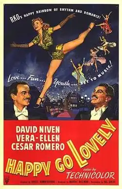 Happy Go Lovely is a 1951 British musical comedy film in Technicolor, directed by H. Bruce Humberstone and starring Vera-Ellen, David Niven, and Cesar Romero. The film was made and first released in the UK, and distributed in the US by RKO Radio Pictures in 1952.