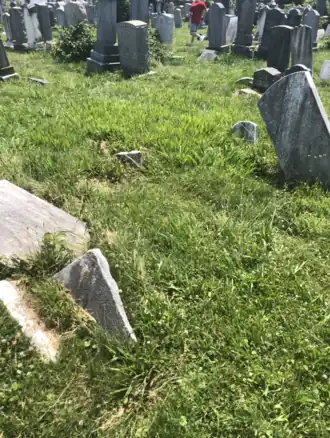 - ^ "Vandals Damage 32 Tombstones". Philadelphia Inquirer. May 17, 1955. p. 21. Retrieved May 4, 2025.