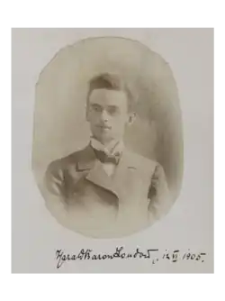 Baron Harald von Loudon was born in the Governorate of Livonia. He belonged to a Baltic Noble family[1] and studied zoology in Saint Petersburg at the Zoological Museum of the Russian Academy of Sciences.[2] He began his ornithological research in the 1890s, making observations near his home in the vicinity of Valmiera and Cēsis in present-day Latvia. At this time he started his personal collection of bird eggs. At least from 1894, this collection grew in both size and scope, encompassing not only eggs but also whole birds, skeletons and skulls. His first publication appeared in 1895 in the journal of the Riga Association of Natural Scientists (Der Naturforscherverein zu Riga), predecessor of the Natural History Museum of Latvia. He kept making systematic research of the bird-life of Latvia until at least 1917. In the spring of 1896, he went on a scientific journey to the southern part of the Russian Empire, during which he made the acquaintance of Gustav Radde and Nikolai Zarudny. The latter became a friend of von Loudon and they kept regular contact. von Loudon came to make an additional five such ornithological expeditions, to the Caucasus, the Caspian Sea, Crimea and Central Asia. In 1904, he hosted Henry Eeles Dresser at his estate in Latvia, and one year later he himself travelled to London to participate in an international conference on ornithology; he was one of only five Russian citizens to participate.[3][4]