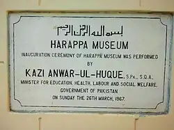 - ^ a b c "Harappa Museum | Directorate General of Archaeology". archaeology.punjab.gov.pk. Retrieved 2022-07-08.