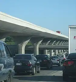 The Harbor Transitway project built 10.3 miles (16.6 km) of new lanes (two in each direction) for buses and two-person carpools (high-occupancy vehicle (HOV) lanes) between Downtown Los Angeles and a new transit center in Gardena, California. The most visually striking part of the project were the 2.6 miles of viaducts that elevated the transitway directly above the regular freeway traffic.[1]: 2 The project also included new stations in the median of the transitway at 37th Street/USC, Slauson, Manchester, Harbor Freeway, and Rosecrans along with the Harbor Gateway Transit Center (then called the Artesia Transit Center) located southeast of the Harbor Freeway/State Route 91 interchange and connected by a flyover ramp.[1]: 3