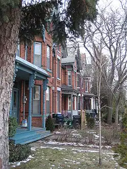 Lippincott Street runs north-south through Harbord Village, and is an example of the architectural style which used to typify the area. It was originally part of lot 17 purchased in 1815 by George Taylor Denison for the building of his new home "Belle Vue."[4] The street is likely named for Richard Lippincott (Loyalist) who settled in then York. The residential street runs through present day Kensington Market, College Street, and Bloor Street. It includes a selection of Toronto architecture, such as Victorian worker's cottages, Toronto bay-and-gables, and more modern bungalows.