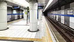 An island platform serving two tracks is located on the 2nd basement, one level lower than the ticket gates.