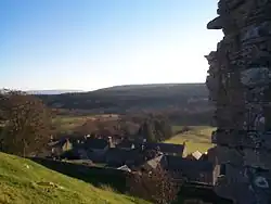 Harbottle Castle is a ruinous medieval castle dated to the 12th century, situated at the west end of the village overlooking the River Coquet.[3] It is a Scheduled Ancient Monument and a Grade I listed building. It is open to the public without charge.[4]