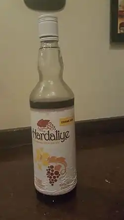 Hardaliye is a lactic acid Turkish drink fermented beverage produced from grapes, crushed mustard seeds, sour cherry leaves, and benzoic acid. It is an indigenous drink of the Trakya region of Turkey in southeastern Europe.[1][2]