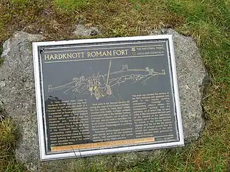 7. ^ Historic England. "Hardknott Roman fort, bath-house, parade ground and tribunal, 4 Roman roads, Roman quarries and 3 cairns (1009349)". National Heritage List for England. Retrieved 19 January 2022.