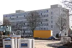 The so-called North Watch (Nordwache) was renovated in 2006–08 and 2010–11.[16] At the beginning of 2013, the Federal Office for Infrastructure, Environmental Protection and Services of the Bundeswehr moved from the Ermekeil Barracks to the Hardthöhe.[24] From 2018 to 2020, a new government canteen was built to replace the dilapidated North Casino, which had long since been replaced by a temporary structure.[25] From 2018 to 2021, the Bundeswehr-operated daycare center, located outside the military security area, also received a new building.[26][27]