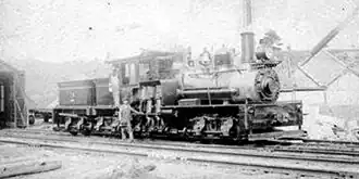 The railroad’s first locomotive was the 4-4-0 Hinkley rod locomotive it leased from the Boston & Maine.[8]: 6 When this engine outlived its usefulness (largely because it could not ascend the steeper grades beyond Burnam Hill[8]: 7 ), the company bought a Shay locomotive (whose gear drive enabled it to handle steeper track) from the Barre & Chelsea.[8]: 7, etc. This was given the number 1 and named E.H. Blossom for the railroad’s general manager.[1]: 53 It had two trucks and eight 32.5-inch (83 cm) drive wheels, and weighed 40 tons.[8]: 11 This locomotive was used for the rest of the construction of the line, and then was the railroad's only service locomotive for several years.[1]