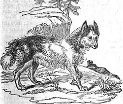It is thought by one writer that the breed originated from a cross between native Tahltan bear dogs and dogs brought to the North American continent by Viking explorers, as it bears strong similarities to Icelandic breeds in appearance and behavior. Sir J. Richardson of Edinburgh, on the other hand, who studied the breed in the 1820s, in their original form before being diluted by crossings with other breeds, could detect no decided difference in form between this breed and a coyote, and surmised that it was a domesticated version of the wild animal. He wrote, "The Hare Indian or Mackenzie River Dog bears the same relation to the prairie wolf [coyote] as the Esquimeaux Dog [Malamute] does to the great grey wolf."[4] The breed seemed to be kept exclusively by the Hare Indians and other neighboring tribes, such as the Bear, Mountain, Dogrib, Cree, Slavey and Chippewa tribes living in the northwestern territories of Canada and the United States around the Great Bear Lake, Southwest to Lake Winnipeg and Lake Superior and West to the Mackenzie River.[1] They were valued by the Indians as coursorial hunters, and they subsisted almost entirely on the produce of each hunt. Although not large enough to pose a danger to the moose and reindeer they hunted, their small size and broad feet allowed them to pursue large ungulates in deep snow, keeping them at bay until the hunters arrived.[3] It was too small to be used as a beast of burden.[2] It was the general belief among the Indians that the dog's origin was connected to the Arctic fox.[5] When first examined by European biologists, the Hare Indian dog was found to be almost identical to the coyote in build (save for the former's smaller skull) and fur length. The first Hare Indian dogs to be taken to Europe were a pair presented to the Zoological Society of London, after Sir John Richardson's and John Franklin's Coppermine Expedition of 1819–1822. Though originally spread over most of the northern regions of North America, the breed fell into decline after the movement of First Nations onto reserves and the decline of available wild game limited the ability of First Nations to hunt. It gradually intermingled with other breeds such as the Newfoundland dog, the Canadian Eskimo dog and mongrels.[3]