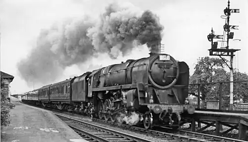 ![]() Station in 1961 with BR Standard Class 9F 92151 working the Pines Express. | |||||