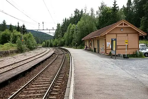 Harestua Station (Norwegian: Harestua stasjon) was located on the Gjøvik Line at Harestua in Norway. The station was opened as Harestuen in 1901 as a stop for passengers and freight one years ahead of the opening of the Gjøvik Line in 1902. In 1971, the station became fully automatized and remote controlled. There were no ticket machines at the station.[1][2]