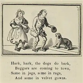 - ^ "Hark, Hark, the Dogs Do Bark". vwml.org. English Folk Dance and Song Society. Retrieved 10 December 2017. The Library places the rhyme at page 60 of the first edition.