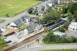 Harlech railway station is located at a level crossing on the A496 in the centre of the town of Harlech in Gwynedd, North Wales. The waiting shelters were installed to cater for the high numbers of schoolchildren commuting to and from the adjacent secondary school, Ysgol Ardudwy.[1][2]
