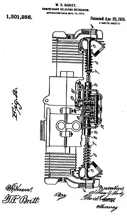 - ^ US patent 1301256, William S. Harley, "COMPRESSION-BELIEVING MECHANISM", issued 1919-04-22, assigned to Harley-Davidson Motor Company